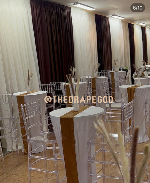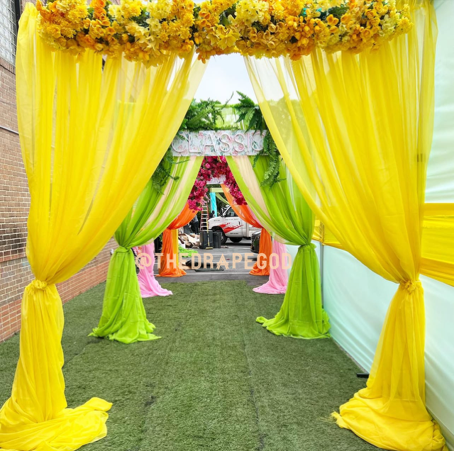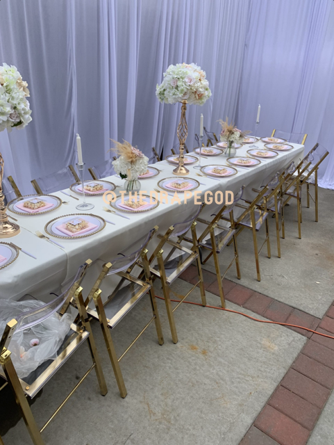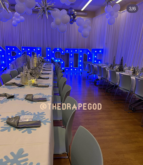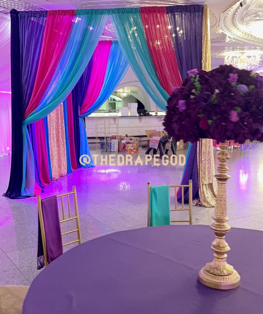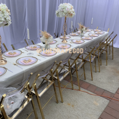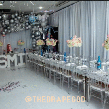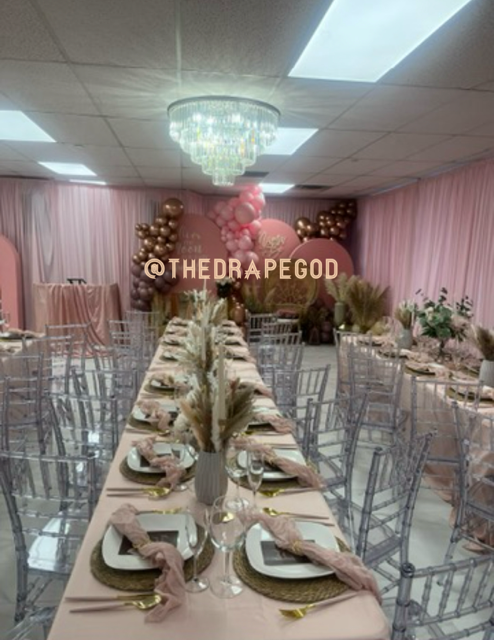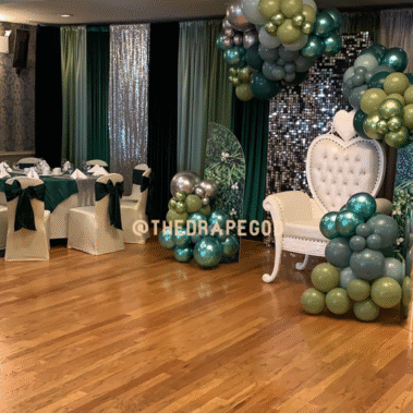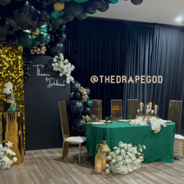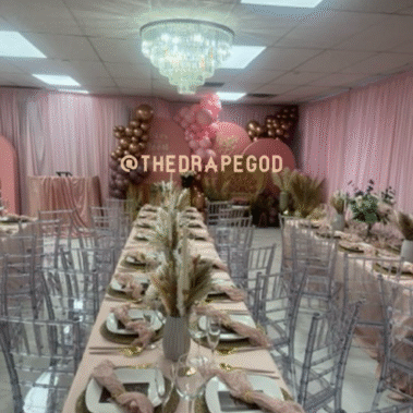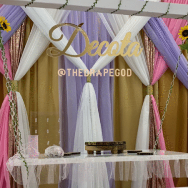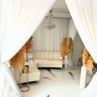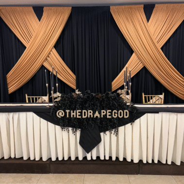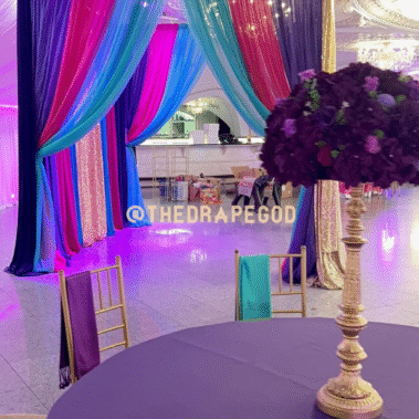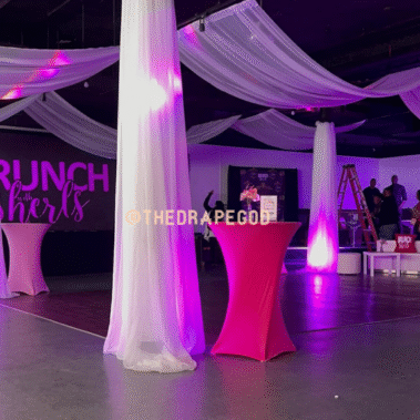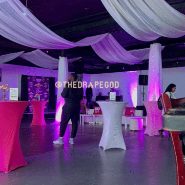 Draping is more than fabric, it’s transformation. From intimate backyard setups to full venue makeovers, our custom draping elevates every event. Whether you’re planning a wedding, baby shower, dinner party, or private celebration, we design and install draping that creates instant atmosphere, depth, and elegance.