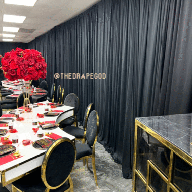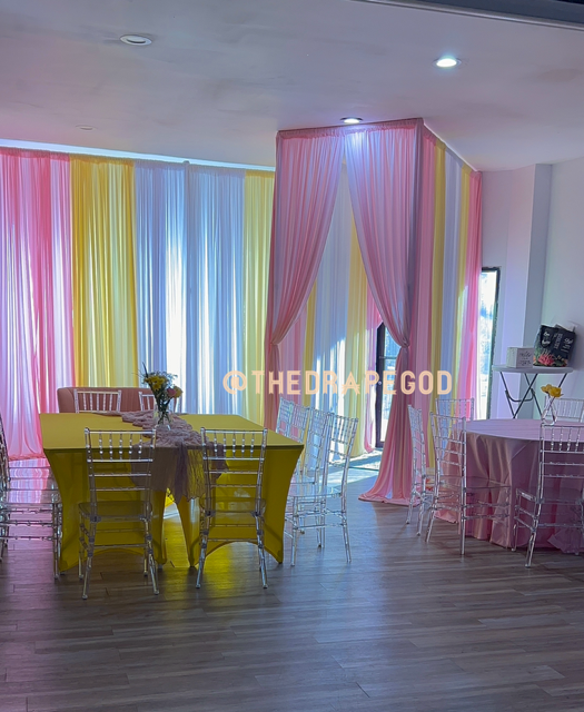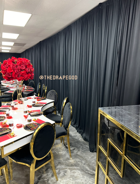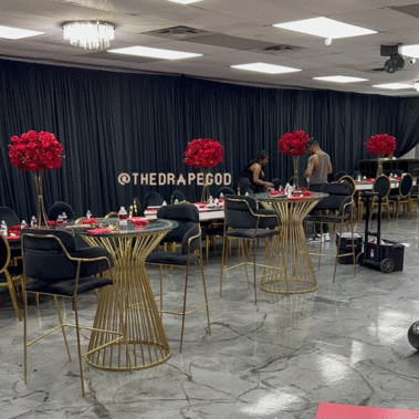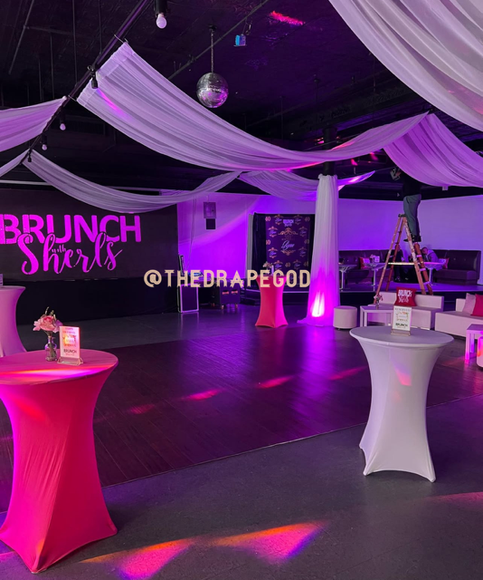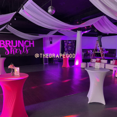 Whether you’re working with a blank room or just need a statement backdrop, we’ve got the tools and talent to elevate it. Book early, our draping dates fill fast.